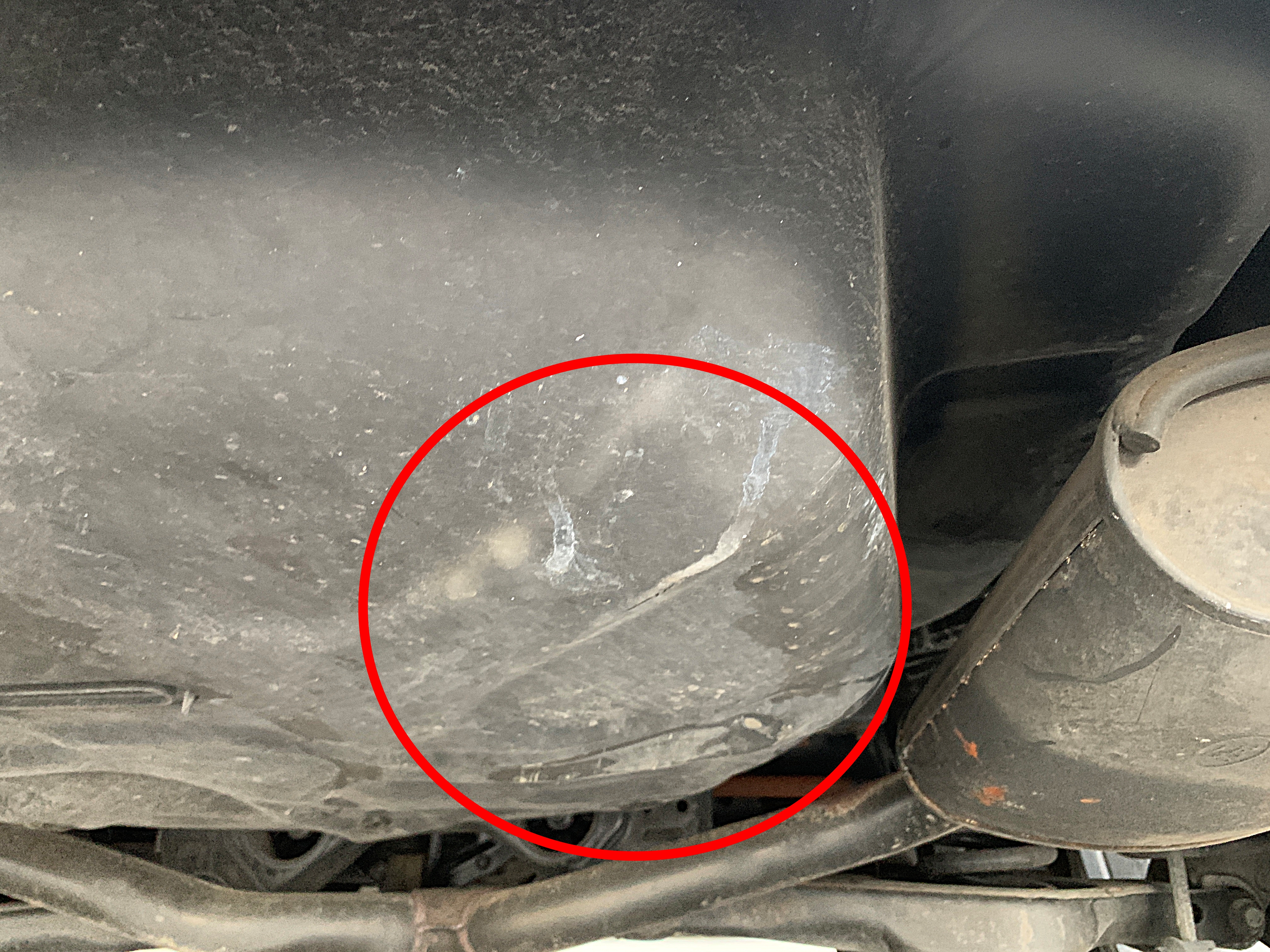 언제부터인가 방지턱 등 도로 요철부분 주행시 차량 뒷부분에서 덜커덩하는 소리가 점검 크게 들려 살펴보니, 스페어타이어가 고정이 안되고 이리저리 움직이고 있었습니다. 곰곰히 차량 내부와 하부를 보니, 무언가에 닿아 살짝 들어간 상황이 포착되었습니다. 아마도 저 부분이 안쪽으로 올라와서 스페어타이어가 제대로 고정이 안되었던 모양입니다.