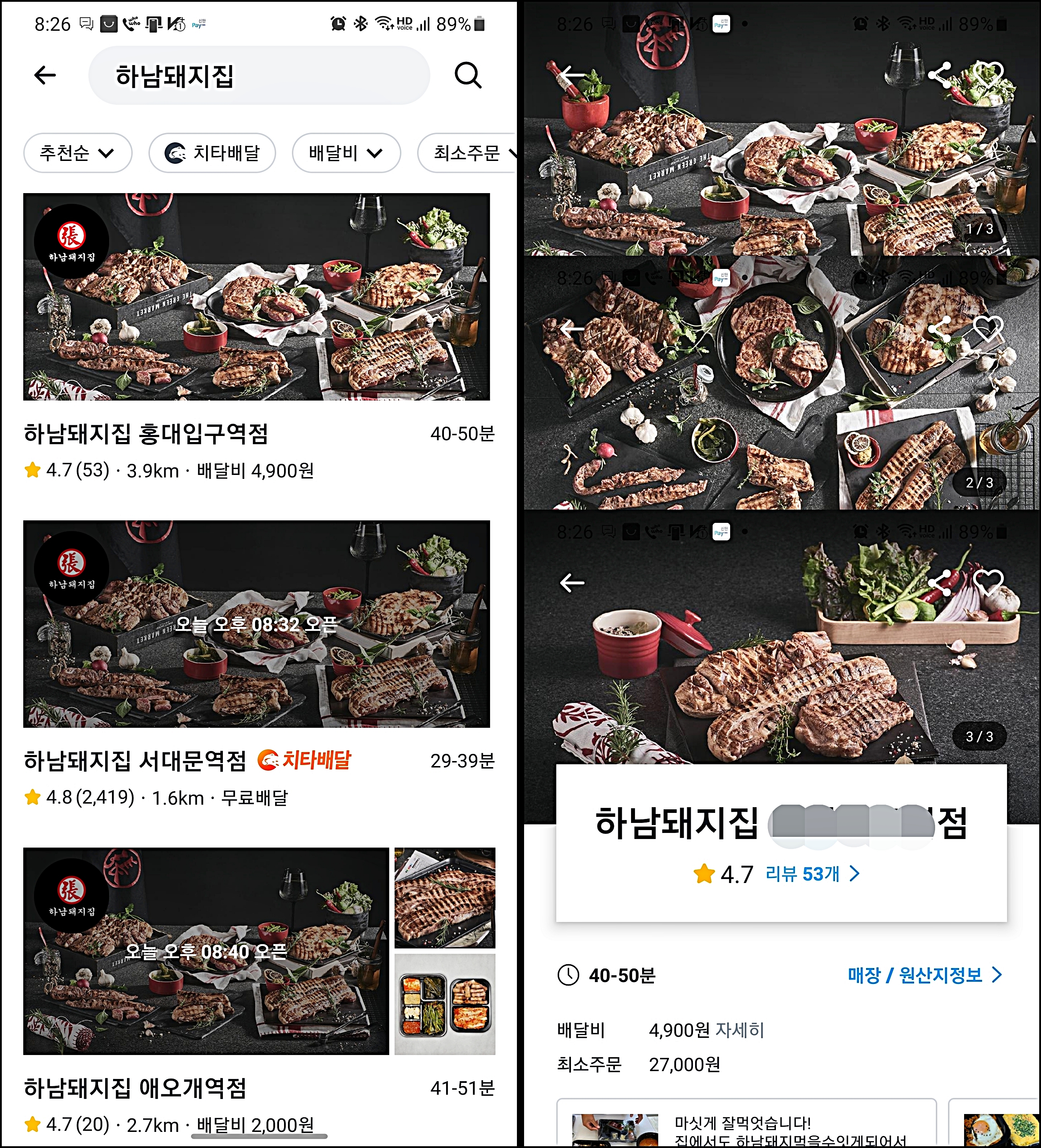 그래서 참지 못하고 배달앱을 뒤지는데,,,