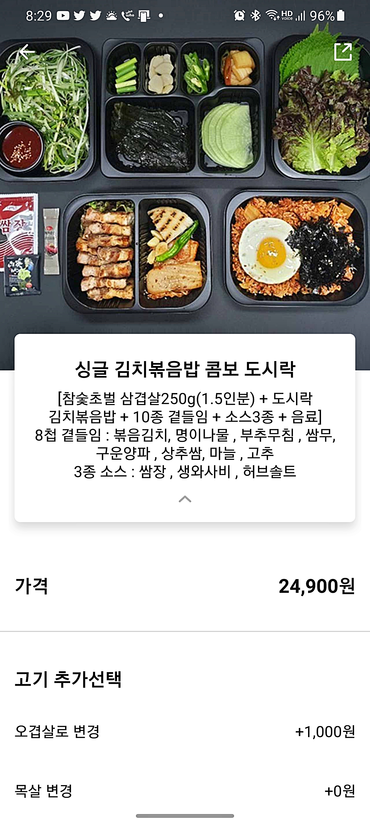 싱글 김치볶음밥 콤보 도시락을 판매하는데,
